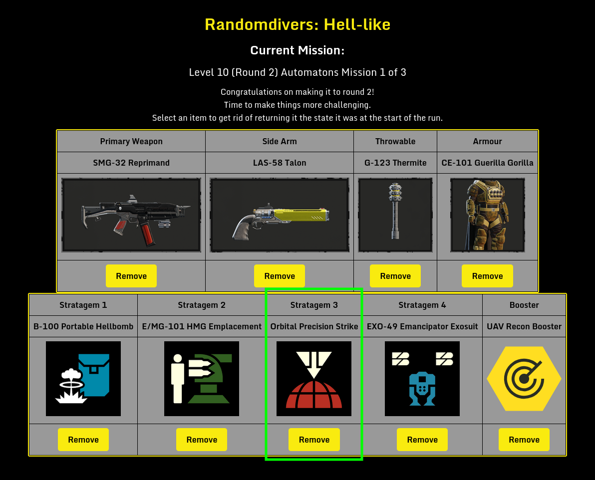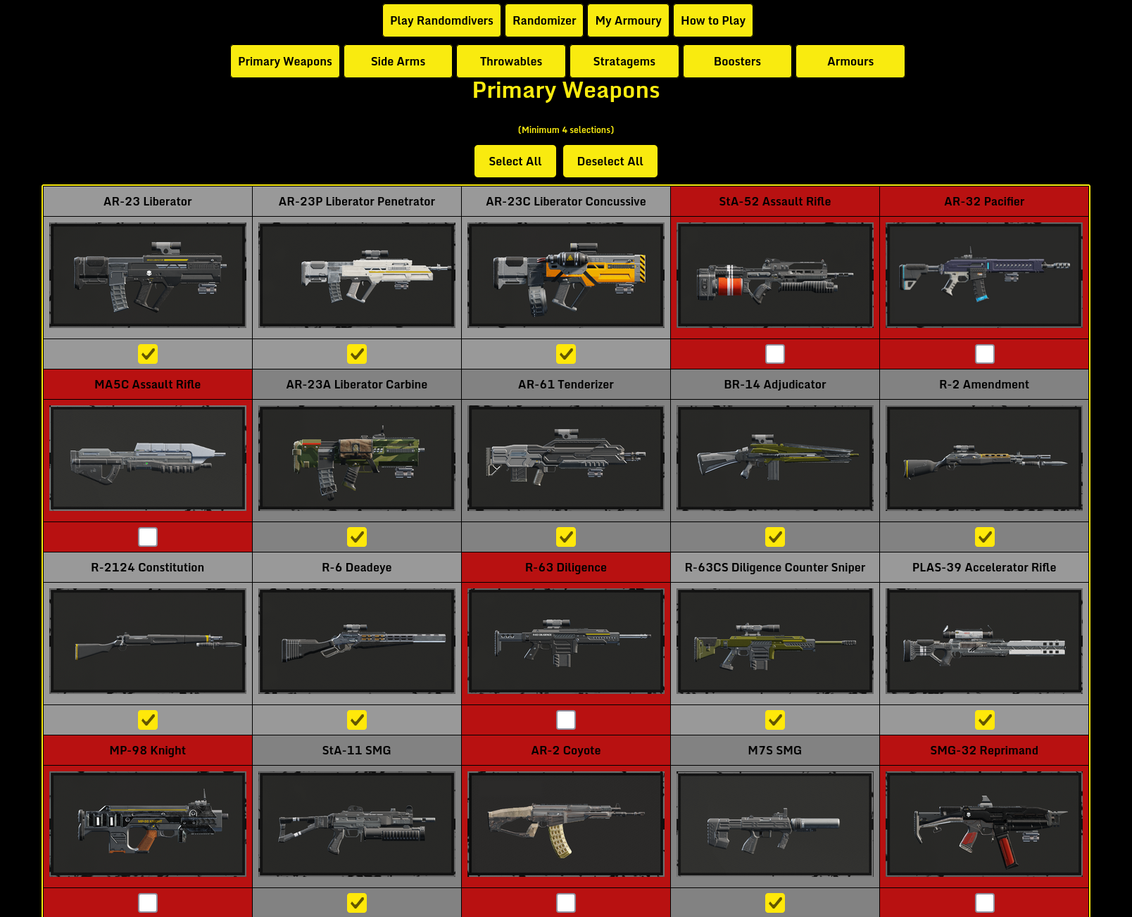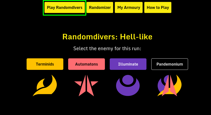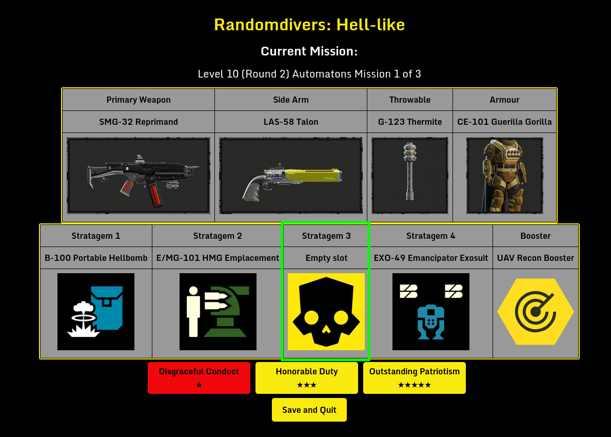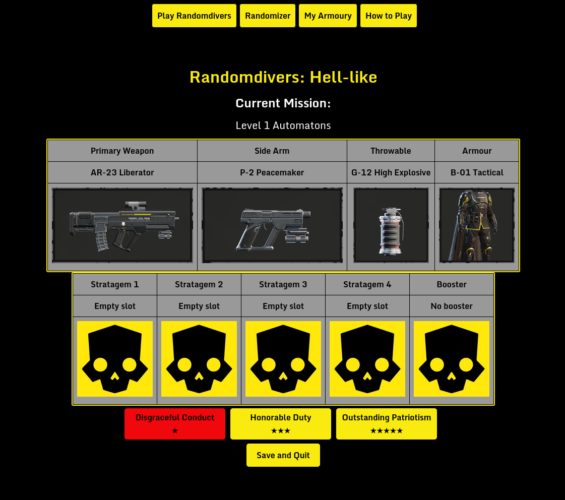 Random Loadout: Click to generate a complete loadout based off of your current Armoury.