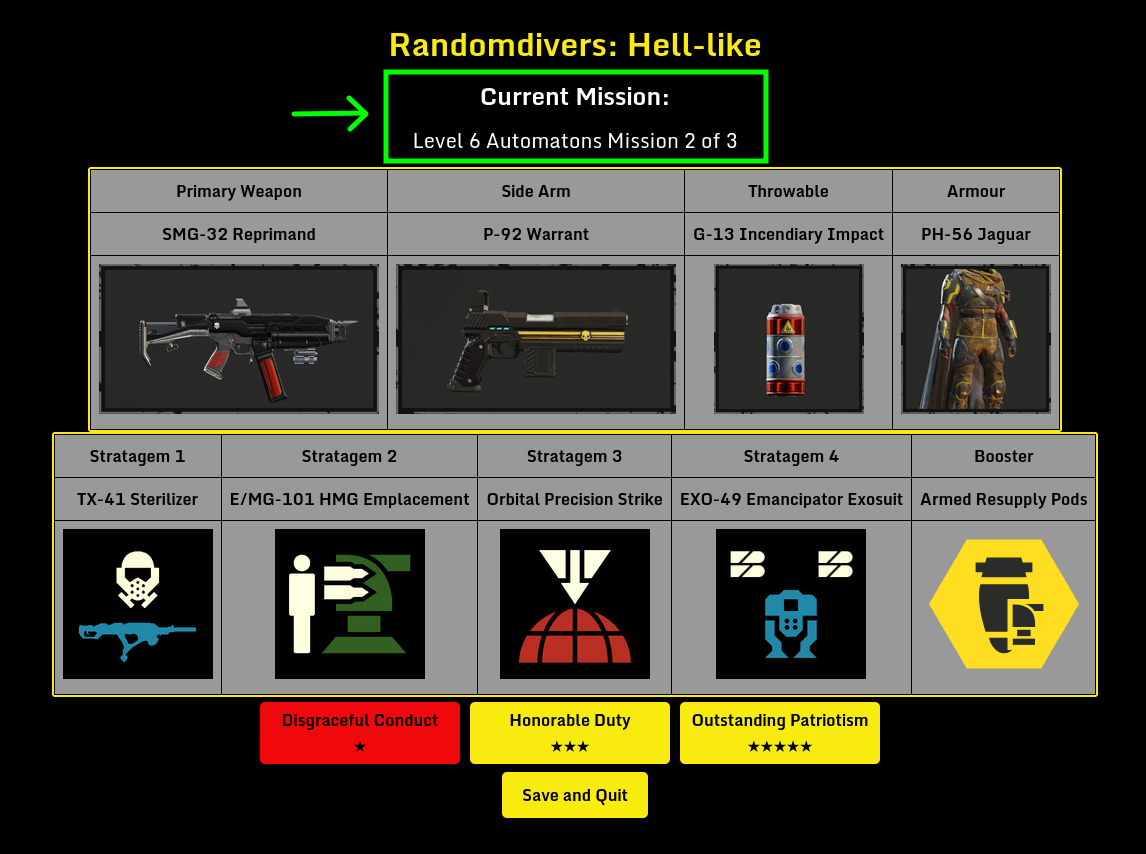 When starting your first level 1 mission, your loadout should look similar to this. Note the stratagems selected for filler.